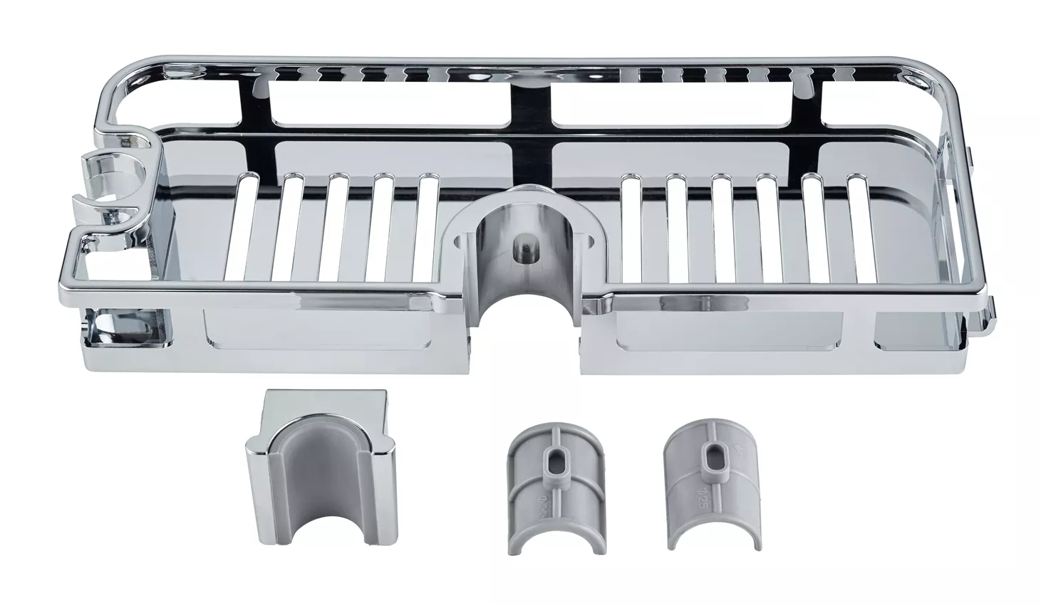 The rectangular shower shelf made of chrome-plated plastic is the ideal solution for keeping your shower tidy. With its modern, glossy design, it fits perfectly into any bathroom and offers a space-saving way to store shampoo, shower gel, and other care products. Thanks to its simple attachment by hanging it onto the shower rail, it is highly flexible and can be installed quickly – without drilling or gluing.