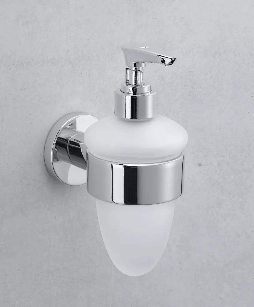 The practical pump dispenser ensures easy dosing of the soap and provides a pleasant user experience. Whether in a private bathroom, guest bathroom, or in hotels, the chrome-plated glass soap dispenser adds a touch of luxury and stylish elegance to any wash area.