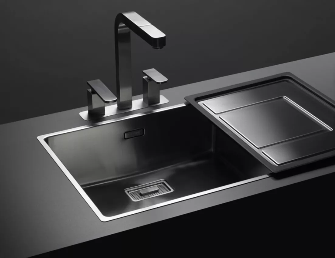 - Positionnement Polyvalent : Peut être placé de chaque côté ou directement au-dessus de l’évier, permettant à l'eau de s'écouler directement dans la cuve.