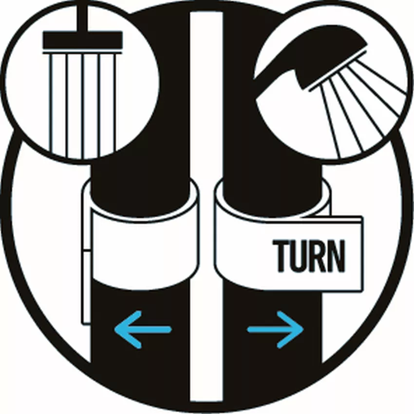 - Einfaches Umschalten: Dank des eleganten Dreh-Umstellers kannst du den Wasserfluss mühelos zwischen Hand- und Kopfbrause wechseln.