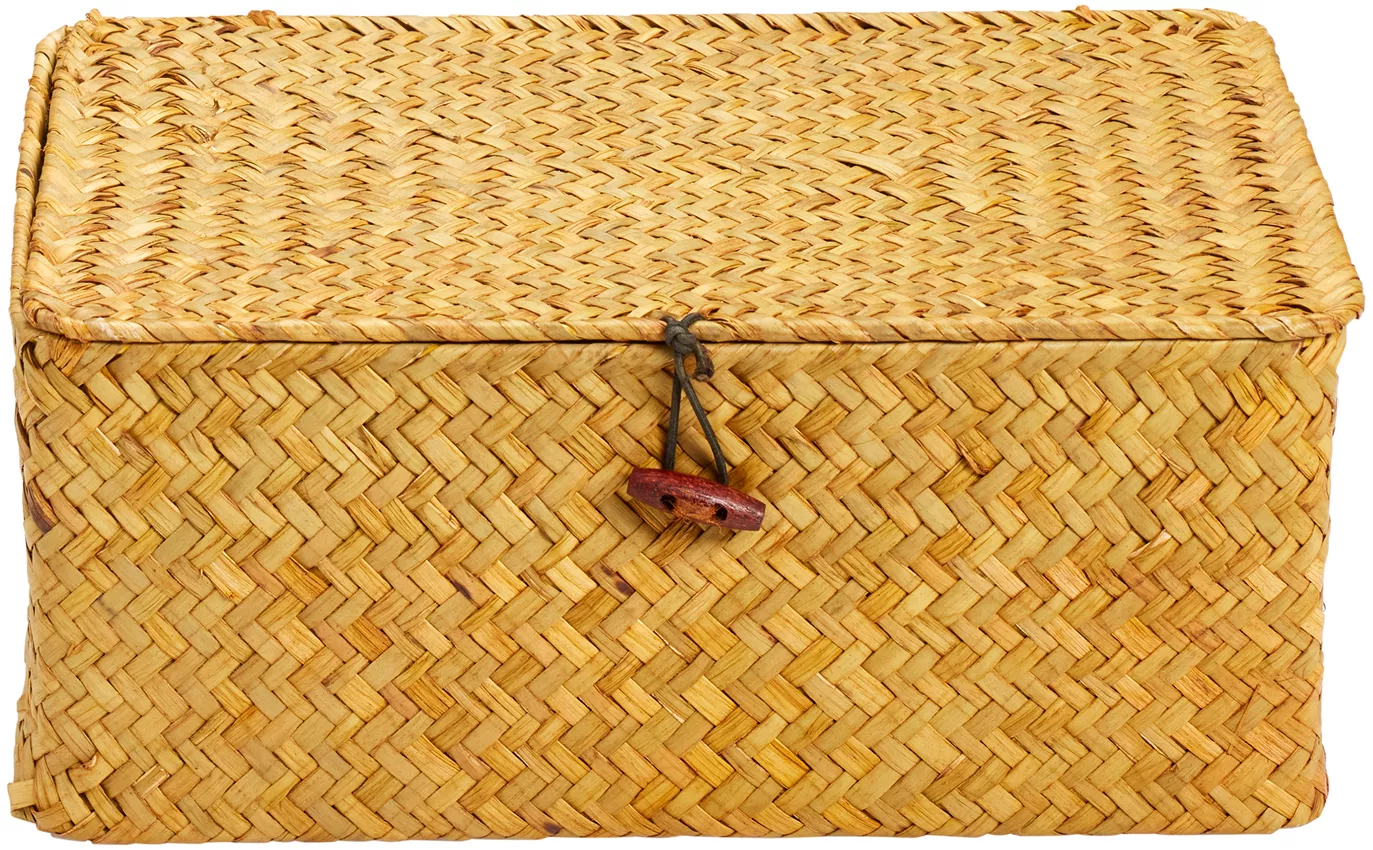 Unser Aufbewahrungskorb Straw aus Seegras vereint Ordnung und Stil auf charmante Weise. Mit seinem praktischen Deckel bewahrt er deine Sachen sicher auf und bietet vielseitige Möglichkeiten zur stilvollen Aufbewahrung in jedem Raum deines Zuhauses.