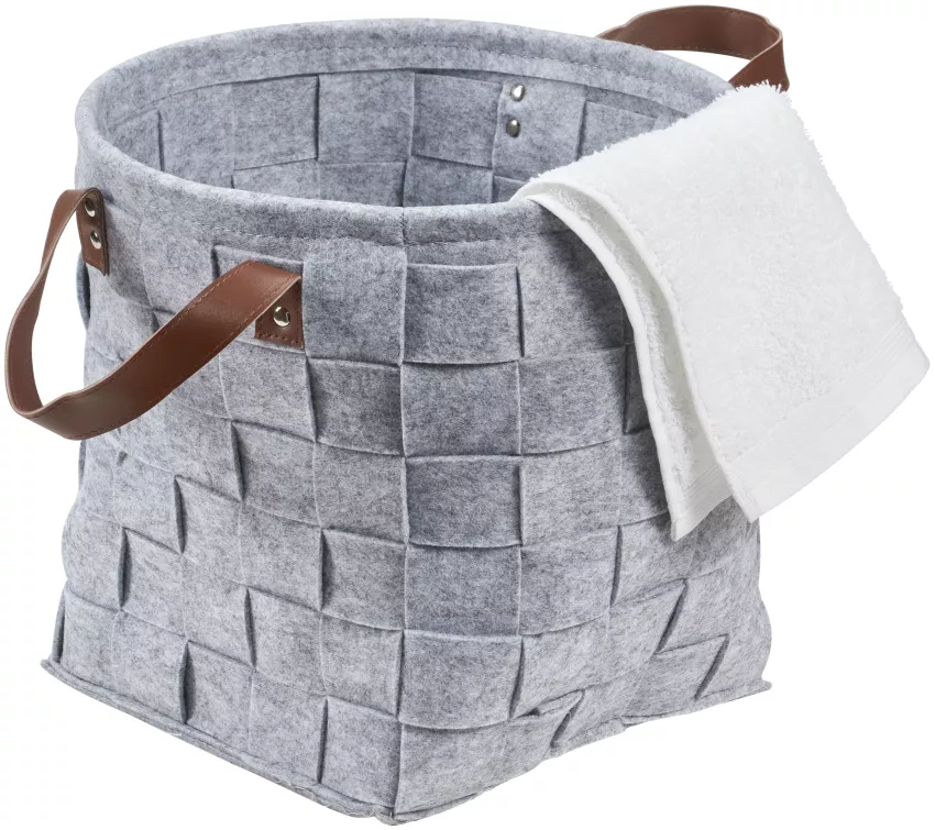 Dieser Aufbewahrungskorb ist perfekt geeignet, um grössere Badutensilien oder Frottierwäsche stilvoll zu verstauen. Sei es im Badezimmer, Schlafzimmer oder Wohnbereich - er bietet ausreichend Platz und setzt zugleich ein modisches Statement.