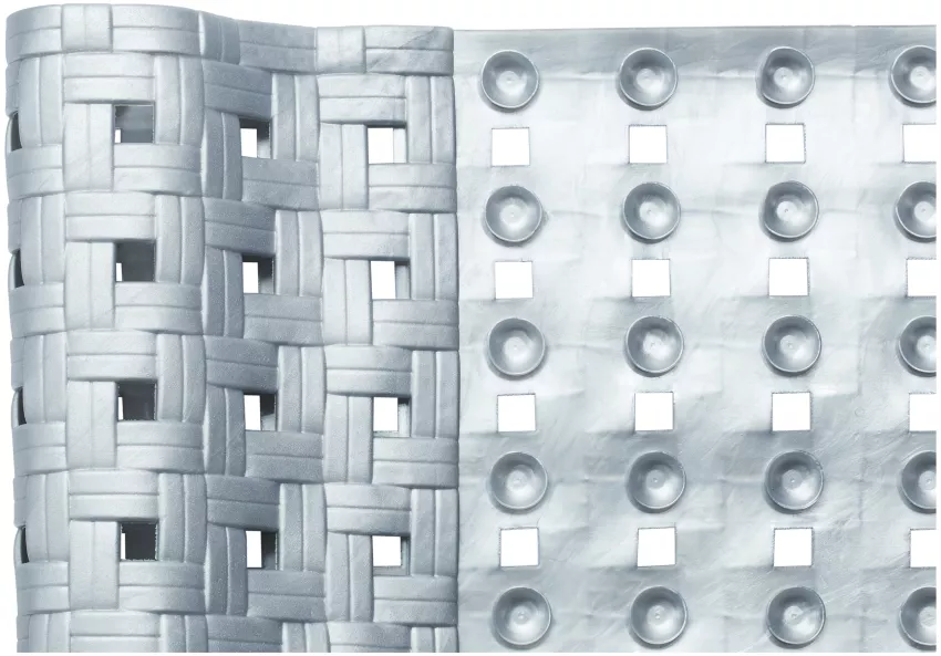 Die Wanneneinlage Basky vermittelt Sicherheit und Komfort und verleiht deinem Badezimmer durch seine silberne Farbe eine zusätzliche Portion an moderner Eleganz. Die aufgeraute Oberfläche und die exzellent haftenden Saugnäpfe auf der Unterseite sorgen während dem Duschen für eine hohe Trittsicherheit und verhindern ein gefährliches Ausrutschen. Das hautfreundliche Material ist komplett frei von schädlichen Phthalaten.