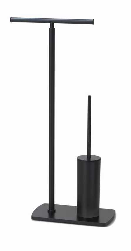 This high-quality freestanding toilet brush and roll holder set combines a toilet roll holder and a toilet brush holder made from stainless steel into one practical unit. With its modern and minimalist design, and matte black color, it adds an appealing and contemporary look to your bathroom or guest WC.